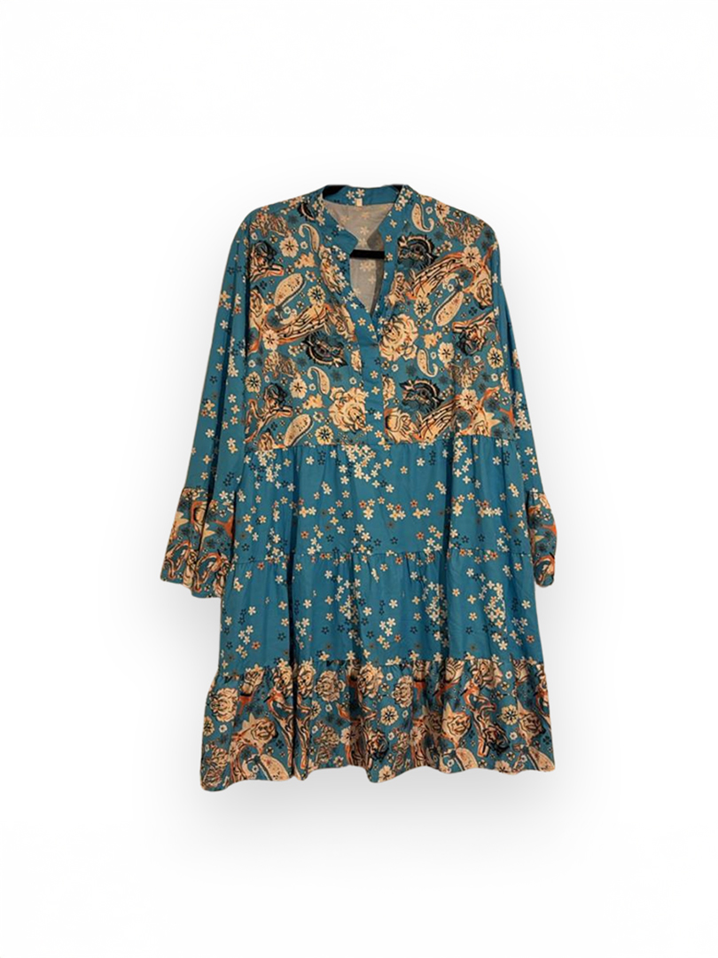 Vestido Corto Floreado Azul Seda No Estira 3x